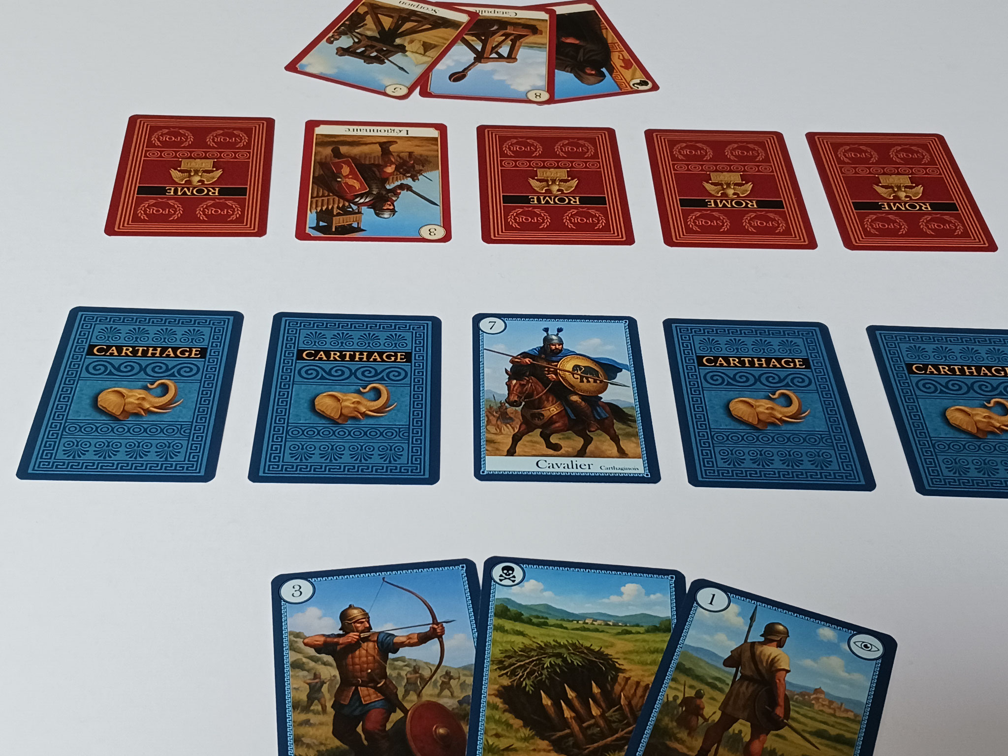 Rome vs Carthage vous invite à revivre ces moments de tension et de gloire à travers un jeu immersif où chaque carte représente une force ou un événement de cette guerre légendaire.